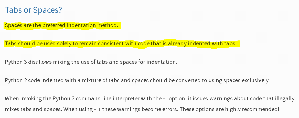 - PEP(Python Enhancement Proposal) 8에 의해 "공백 4칸"이 원칙