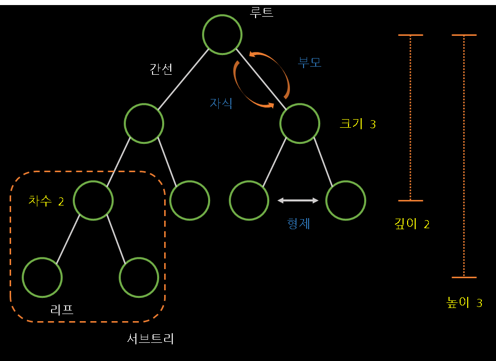 - 즉, 트리는 자식도 트리, 그 자식도 트리 (서브트리)