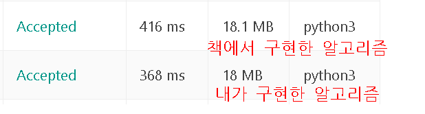 - 내가 구현한 알고리즘 속도가 약간 더 빠름