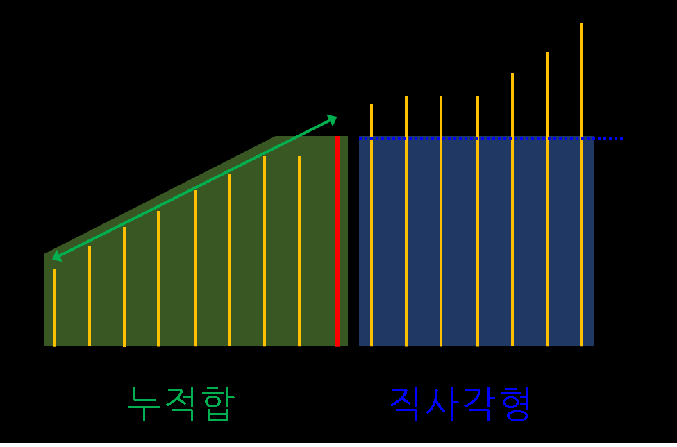 - 좌측은 누적합, 우측은 현 인덱스의 값 기준 직사각형 값