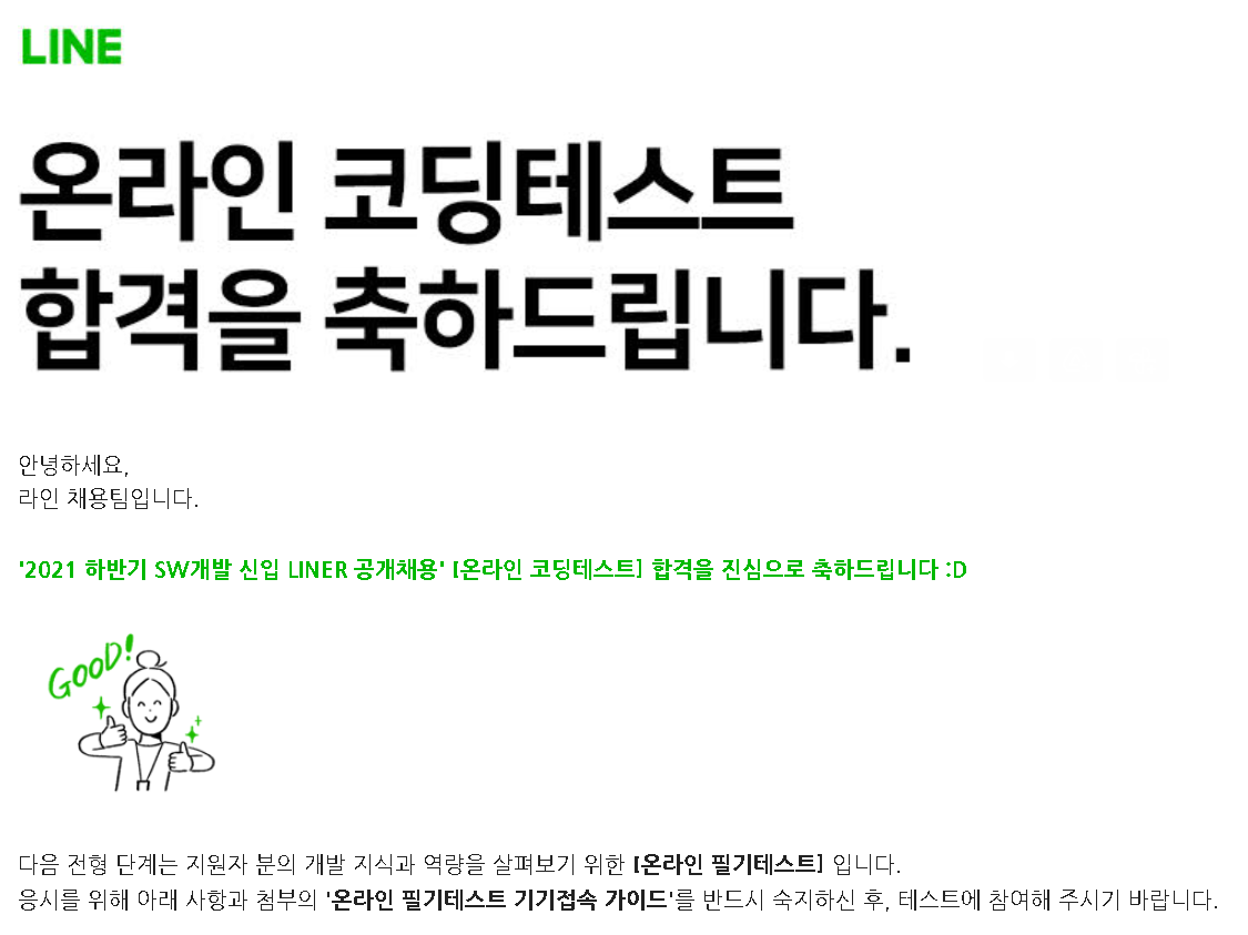 감사하게도 통과는 할 수 있었습니다. 문제를 전부 풀긴 했지만, 확인해보니 작게작게 실수한 문제가 많았습니다. 카카오와 비교해서 문제수는 비슷하고 시간은 반 정도라 뭔가 급하게 풀었던 기억이 있네요. 전체적으로 짧은 시간에 비해 확인해봐야할 조건들이 많은 구현문제들이었다는 생각이 드네요. 테스트 보시는 분들 화이팅하세요!