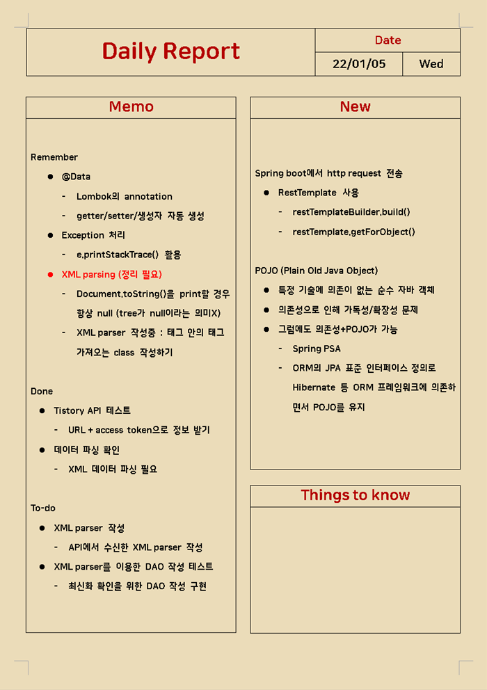 | [Daily Report] 22.01.09 - XML parser 구현 및 TistoryAPI 객체 작성 (0) | 2022.01.09 |