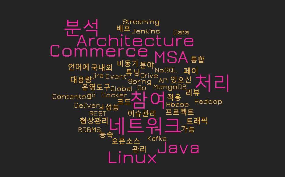 이전처럼 기업들이 공개하고 있는 백엔드 개발자(서버 개발자)의 JD를 통해 어떤 역량이 필요한지 알아보려한다. 그러나 이번에는 백엔드 개발자의 정의보다는, 역량에 초점을 맞추었다. 그리고 지난 데이터 엔지니어를 조사한 경험을 통해 키워드 분석을 원활하게 하고 싶었다. 그래서 정리할 때, 최대한 단어를 통일하거나 조사(ex. 을를이가)를 빼는 등의 노력을 기울였다. 여기에 input 데이터가 주관적이고 공고시기에 따라 다르기 때문에 명확한 결과가 아님을 주의해야한다. 또한 결과를 보면서 불필요한 단어의 frequency가 높다고 판단되는지 확인하고, 각 기업마다 다르지만 다음 단어들은 예외로 filtering했다.