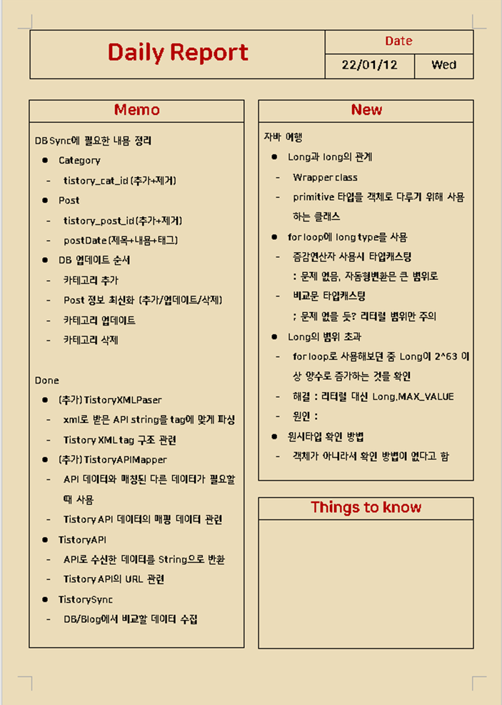 | [Daily Report] 22.01.09 - XML parser 구현 및 TistoryAPI 객체 작성 (0) | 2022.01.09 |