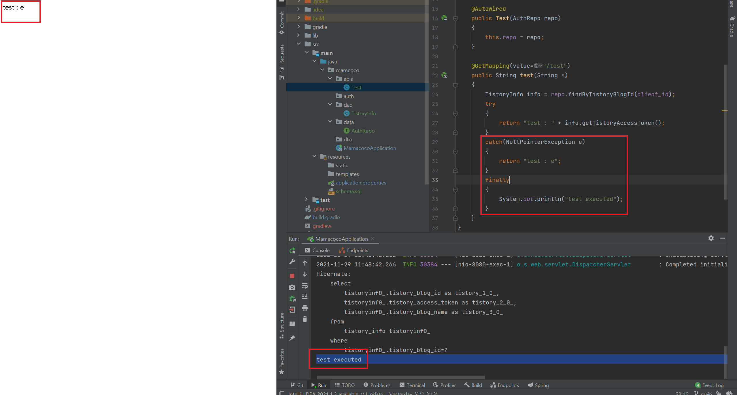 참고로, try-catch-finally에서 try 또는 catch에서 return을 만나더라도 finally문은 무조건 실행됩니다. finally는 객체 메모리를 정리할 때 최종적으로 처리할 무조건 처리할 동작을 넣기 위해 만들어진 것으로 알고 있습니다.