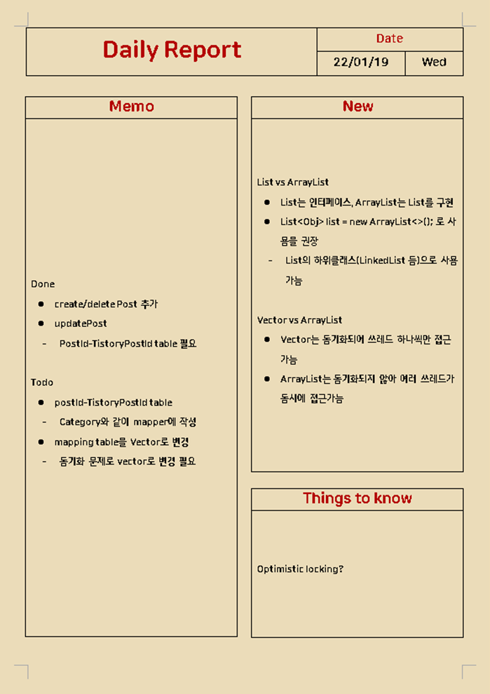 | [Daily Report] 22.01.14 - Category 동기화를 위한 메서드 구현 (진행중) (0) | 2022.01.14 |