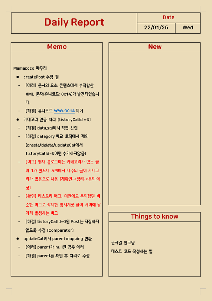 | [Daily Report] 22.01.25 - catParent 수정 완료 및 createPost 수정중 (0) | 2022.01.25 |