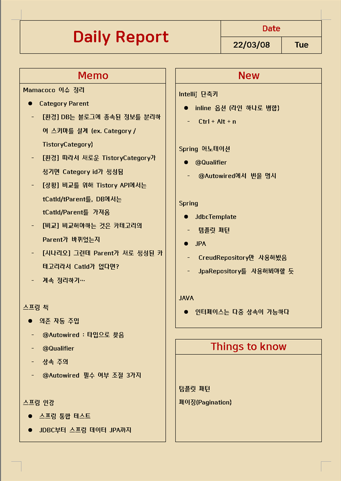 | [Daily Report] 22.03.11 - 스프링 책, mamacoco 이슈 발견 (0) | 2022.03.11 |