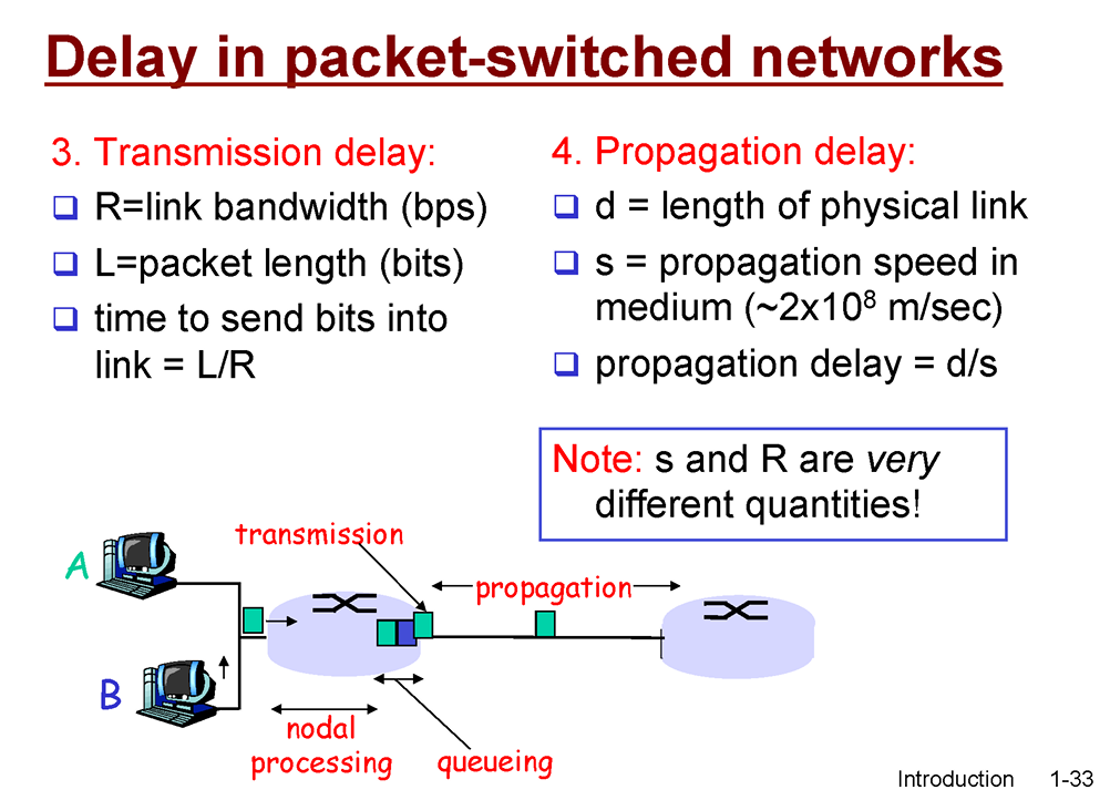 - 패킷 크기를 링크 bandwidth로 나눈 시간 - 4. propagation delay