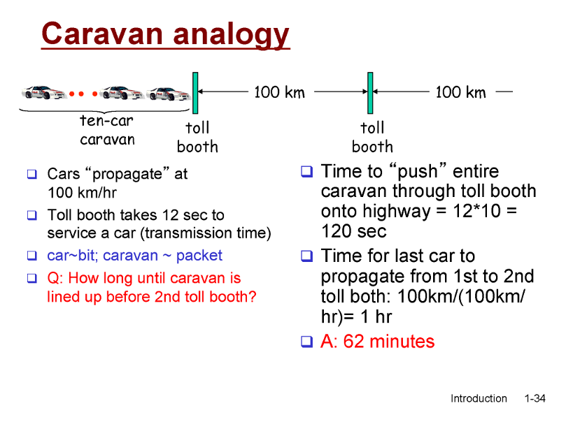 - 패킷 스위칭은 링크에서 빛의 속도로 도달