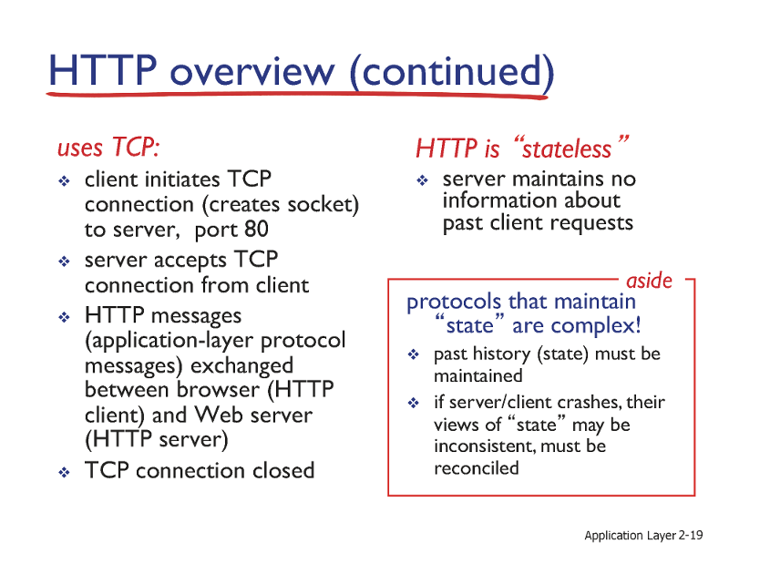 - request/response 이전에 TCP connection이 필요 - Stateless