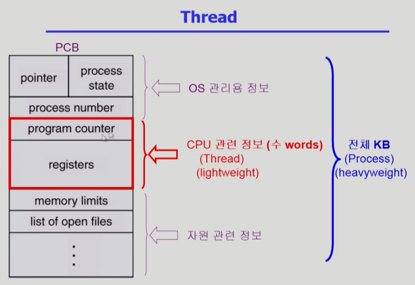 - 자원 절약(공유되는 메모리) -> CPU 수행 관련 정보만 따로 가짐