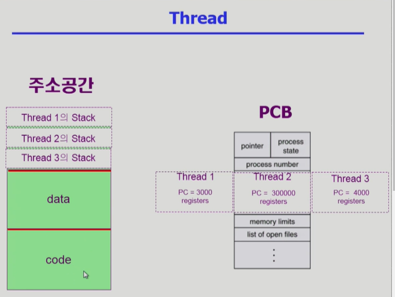 - 프로세스를 생성하는 것보다 쓰레드를 생성하는 cost가 더 적게 소모