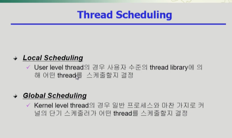 - 사용자 프로세스 내에서 직접 쓰레드를 관리