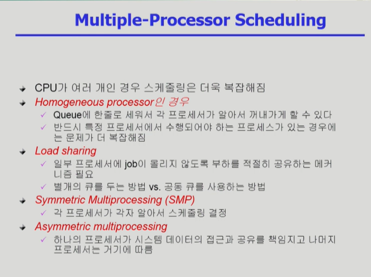 - 특정 프로세서에 일이 치우치지 않도록 관리가 필요 - 1. Symmetric Multiprocessing (SMP)