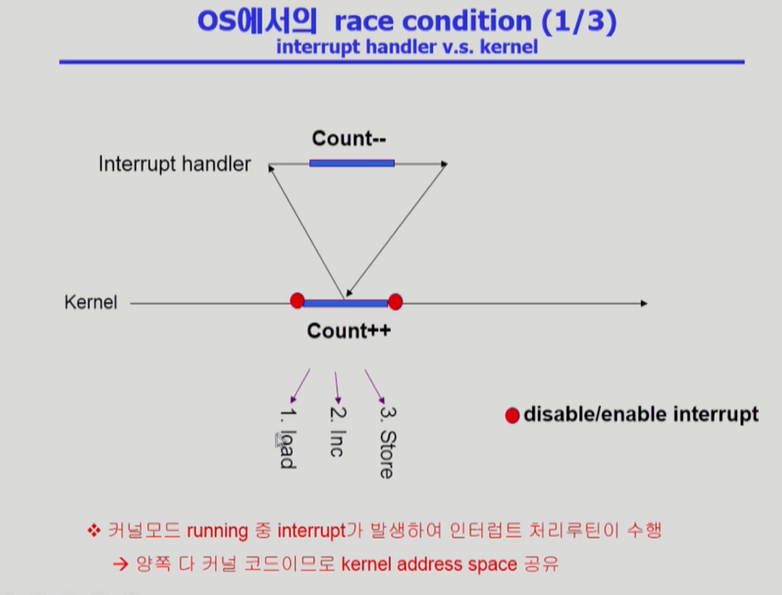 - 해결 방법 : 인터럽트 disable -> 수행 중인 작업 완료 -> 인터럽트 enable