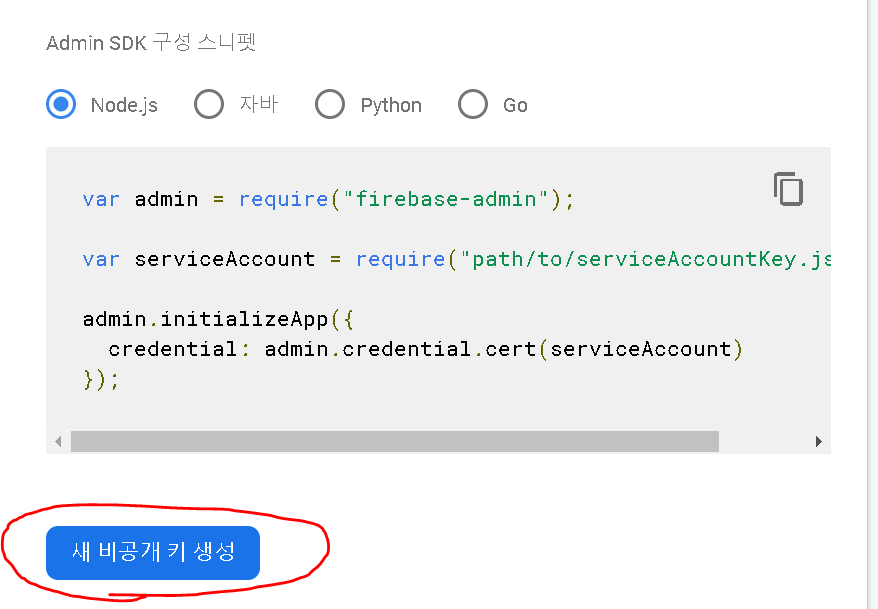 - 서비스 계정 키 생성