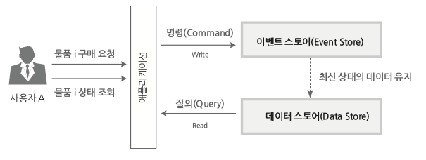 - 데이터 스토어 : 이벤트 결과인 객체의 현재 상태에 대한 Query를 수행
