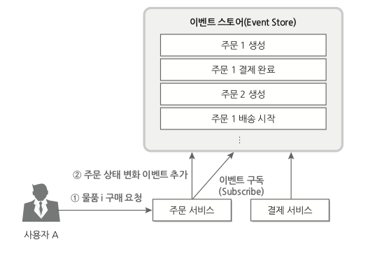 - 이벤트 스토어라는 저장소에 이벤트를 저장