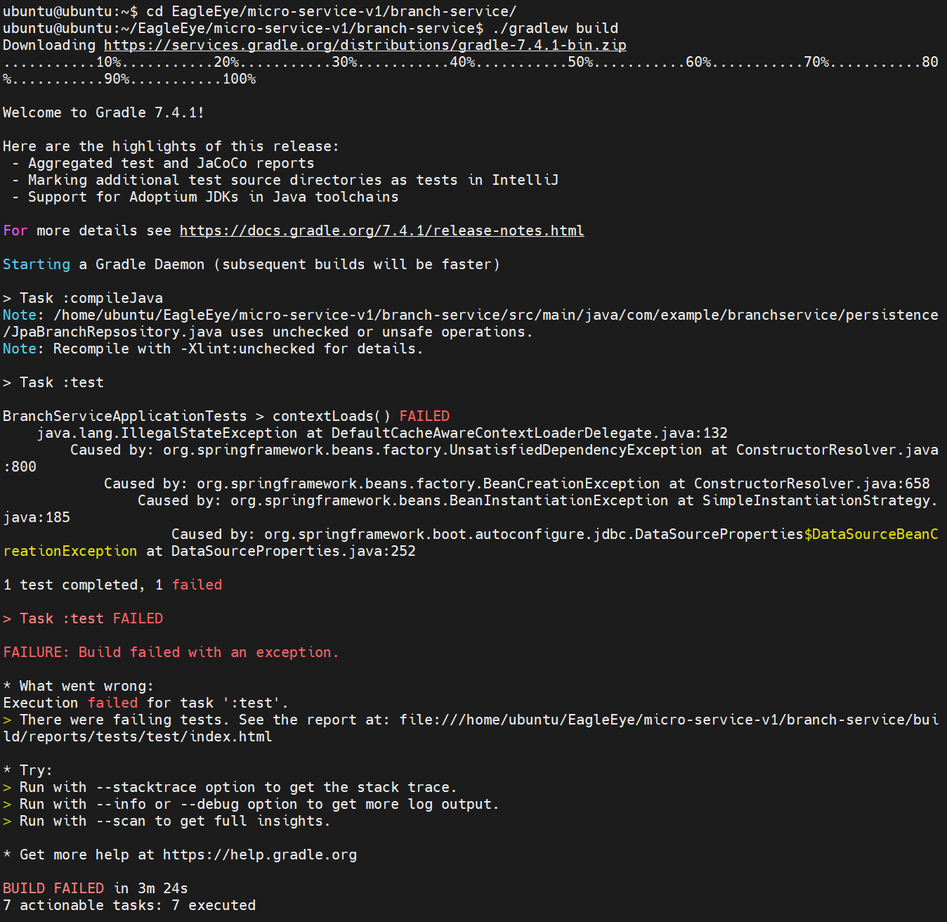 코드에 문제가 있었음- 해결 후 다시 빌드>> git pull>> sudo ./gradlew build- 그냥 빌드한 jar를 /build/libs에 넣자