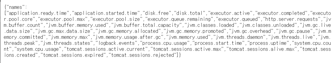 - ex) /acutator/metrics 를 보내면 아래와 같이 세부적인 옵션이 나옴