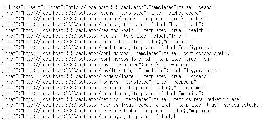 - /actuator 이후에 beans, caches, health 등등을 추가하면 해당 정보를 가져옴
