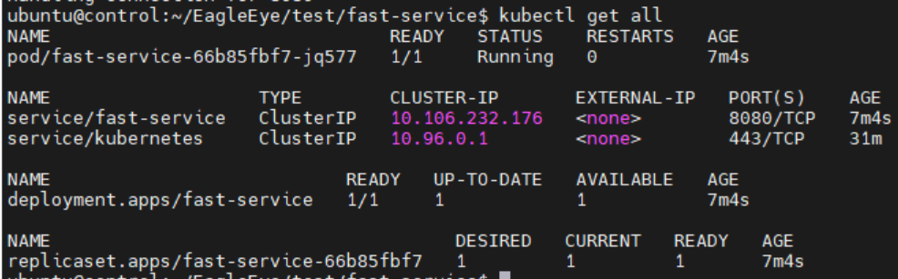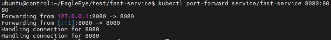 >> kubectl port-forward service/fast-service 8080:8080 - (로컬 환경에서) 테스트