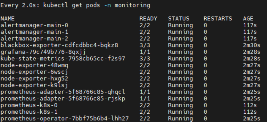 monitoring Namespace 생성 및 CustomResourceDefinitions & operator pod 생성>> kubectl apply --server-side -f manifests/setup>> kubectl apply -f manifests/