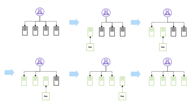 - [방식] 구버전에서 새버전으로 트래픽을 점진적으로 전환하여, 구버전이 점차 삭제
