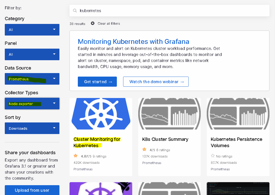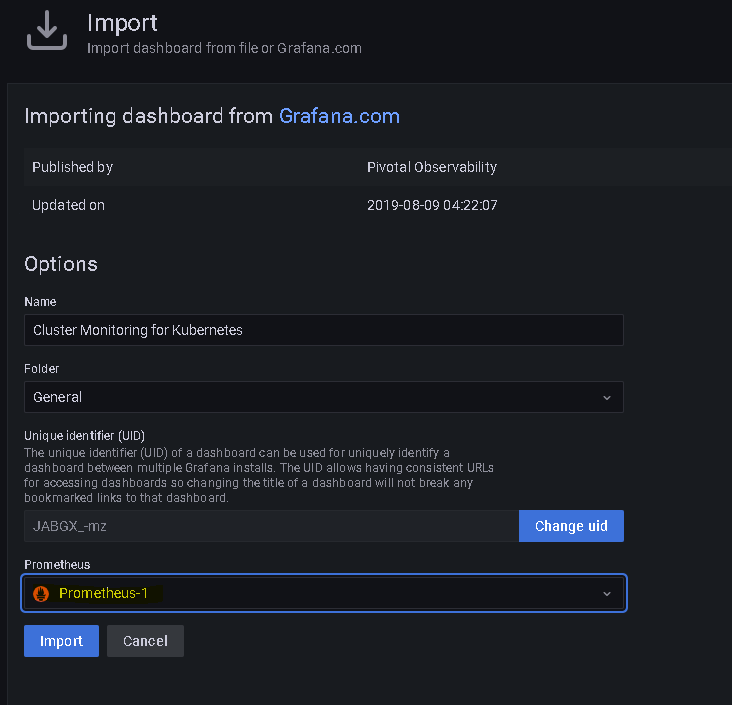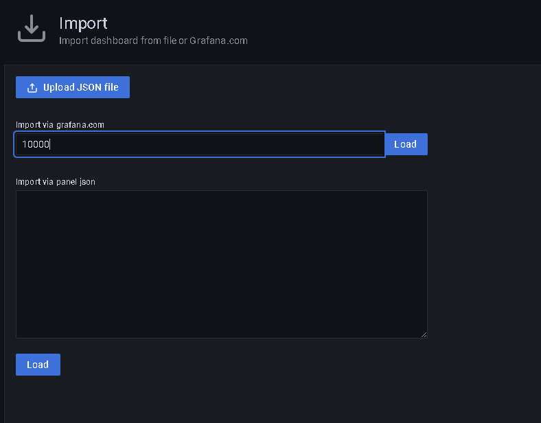 - cop id -> 내 Grafana dashboard로 돌아와서 Create > Import > ID 입력