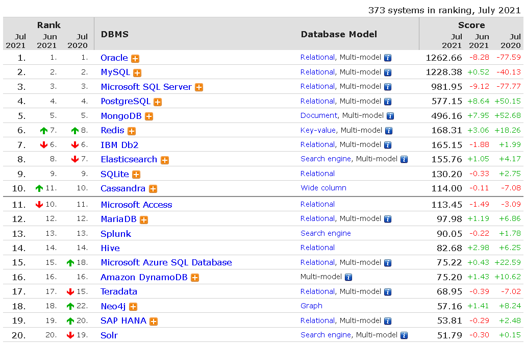 - 가장 널리 사용되고 있는 RDBMS (Oracle DB가 가장 많이 사용하는 듯)